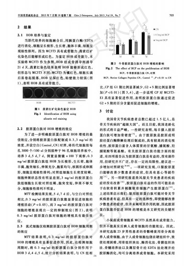 Bovine collagen peptide promotes HOB value increase