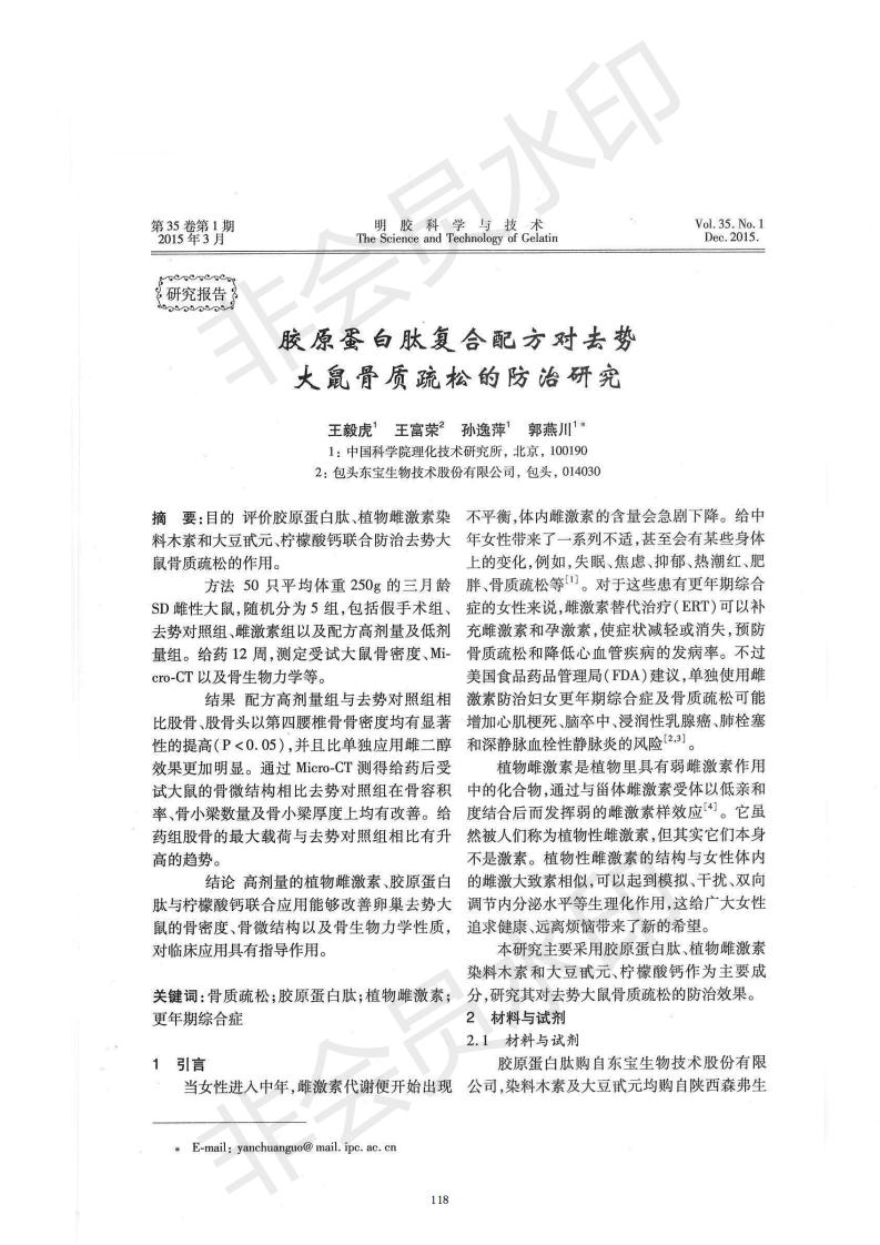 Study on the prevention and treatment of collagen peptide compound formula on osteoporosis in ovarie