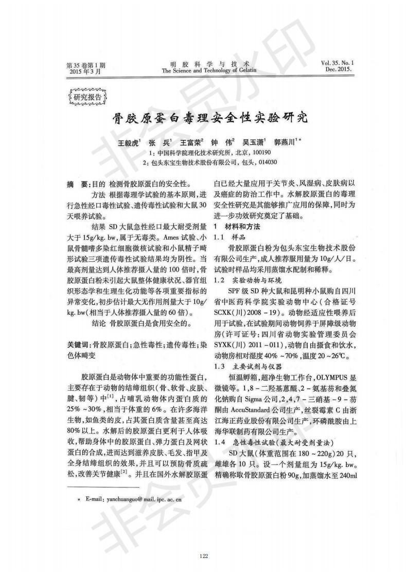 Experimental study on the toxicological safety of bone collagen
