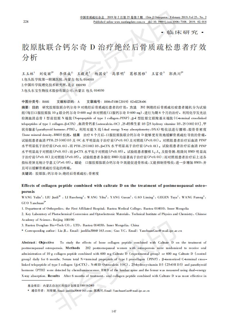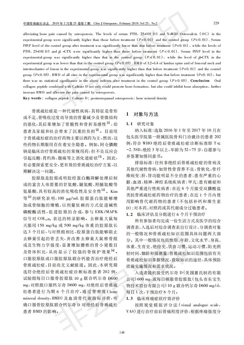 Analysis of the therapeutic effect of collagen peptide combined with Calci D on postmenopausal osteo