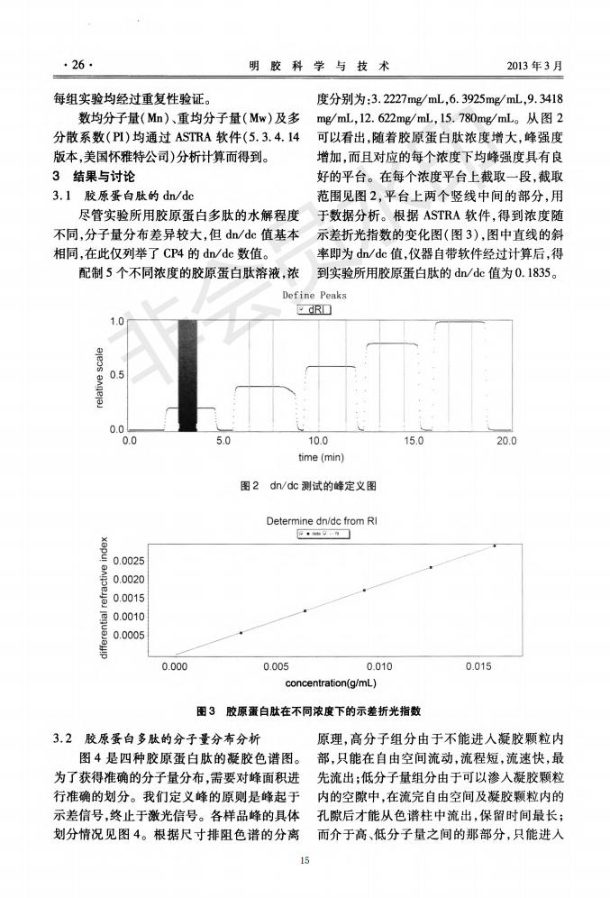 采用色譜柱和激光光散射聯(lián)用的方法表征膠原蛋白肽的分子量
