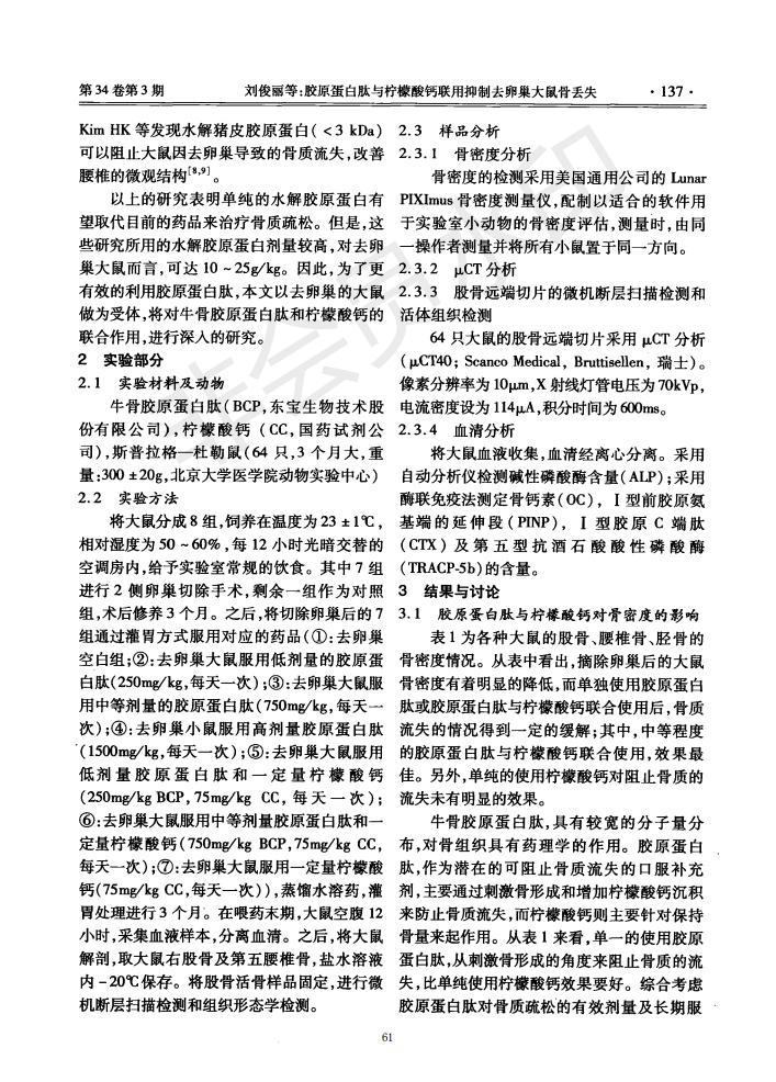 膠原蛋白肽與檸檬酸鈣聯(lián)用抑制去卵巢大鼠骨丟失