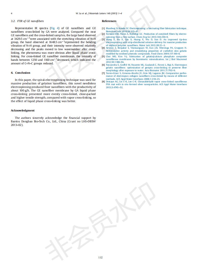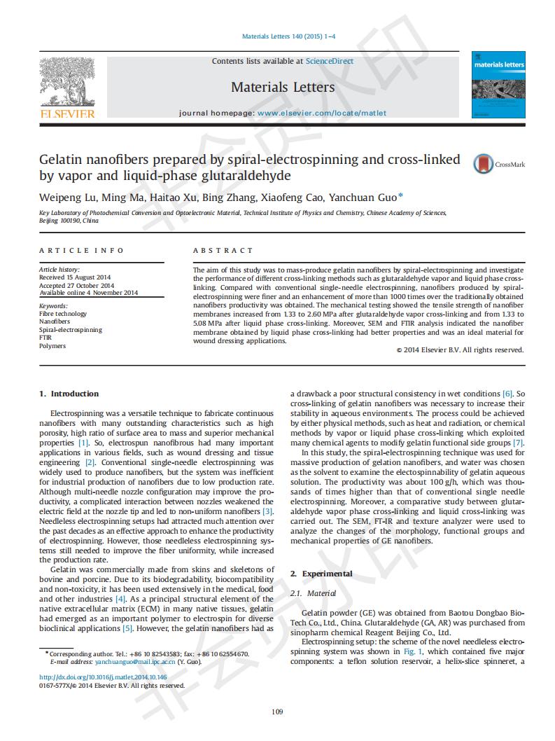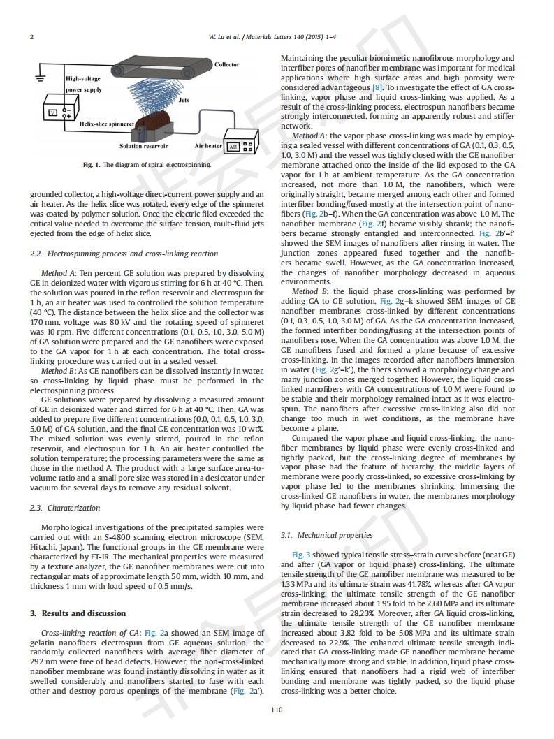 基于螺旋靜電紡絲的明膠納米纖維制備及戊二醛交聯(lián)方式的研究