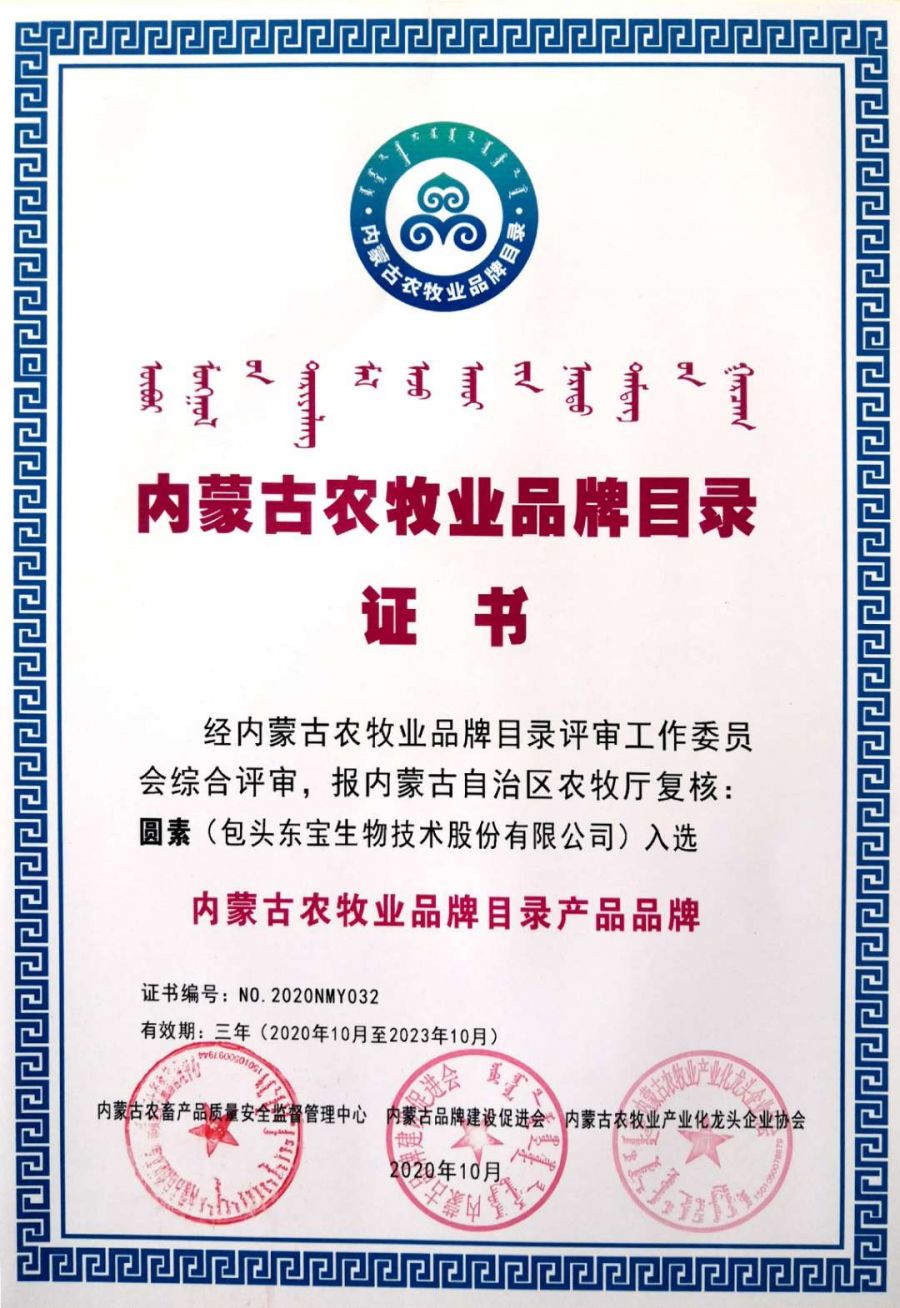 “東寶” “圓素”成功入選內(nèi)蒙古農(nóng)牧業(yè)品牌目錄