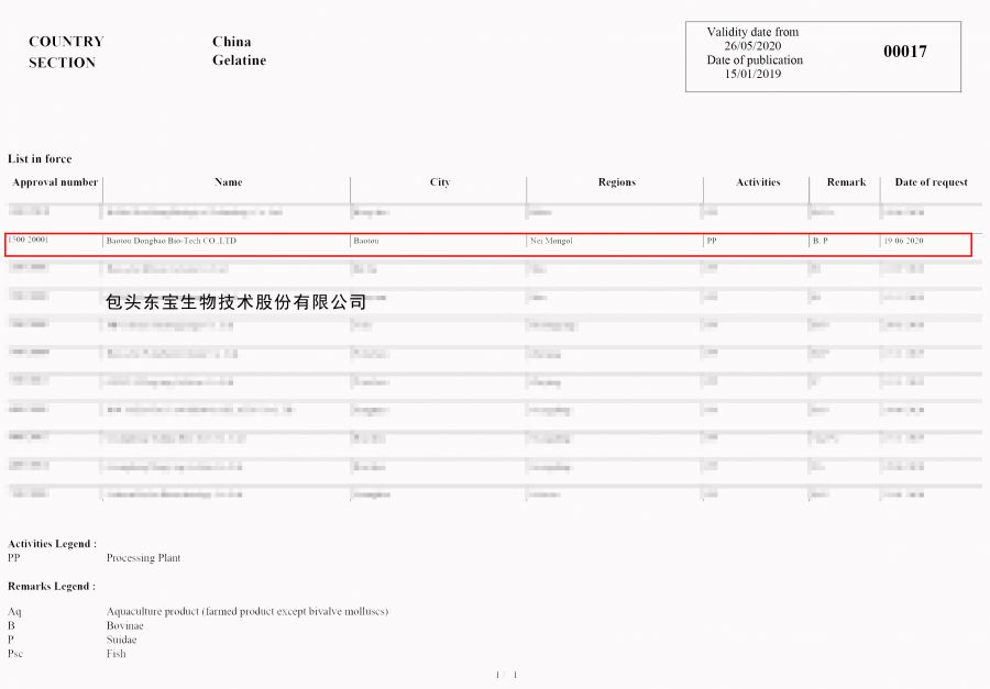 10月28日,歐盟官網(wǎng)對外發(fā)布信息,東寶生物技術(shù)股份有限公司取得了對歐盟出口明膠的注冊登記資格,這標志著我公司生產(chǎn)的明膠產(chǎn)品將正式挺進歐盟市場,開啟“東寶制造”之路。