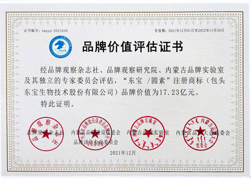 12月29日,由自治區(qū)發(fā)改委、農(nóng)牧廳、市場(chǎng)監(jiān)督管理局等單位指導(dǎo),內(nèi)蒙古品牌建設(shè)促進(jìn)會(huì)主辦的以“聚合認(rèn)證新勢(shì)能,賦能品牌新發(fā)展”為主題的第八屆內(nèi)蒙古品牌大會(huì)暨“蒙”字標(biāo)品牌影響力論壇在呼和浩特市隆重召開。東寶生物作為受邀參加企業(yè),在大會(huì)中榮獲多項(xiàng)大獎(jiǎng),東寶/圓素品牌價(jià)值更是實(shí)現(xiàn)三年持續(xù)突破,升至17.23億元,較去年增加了1.6億元。
